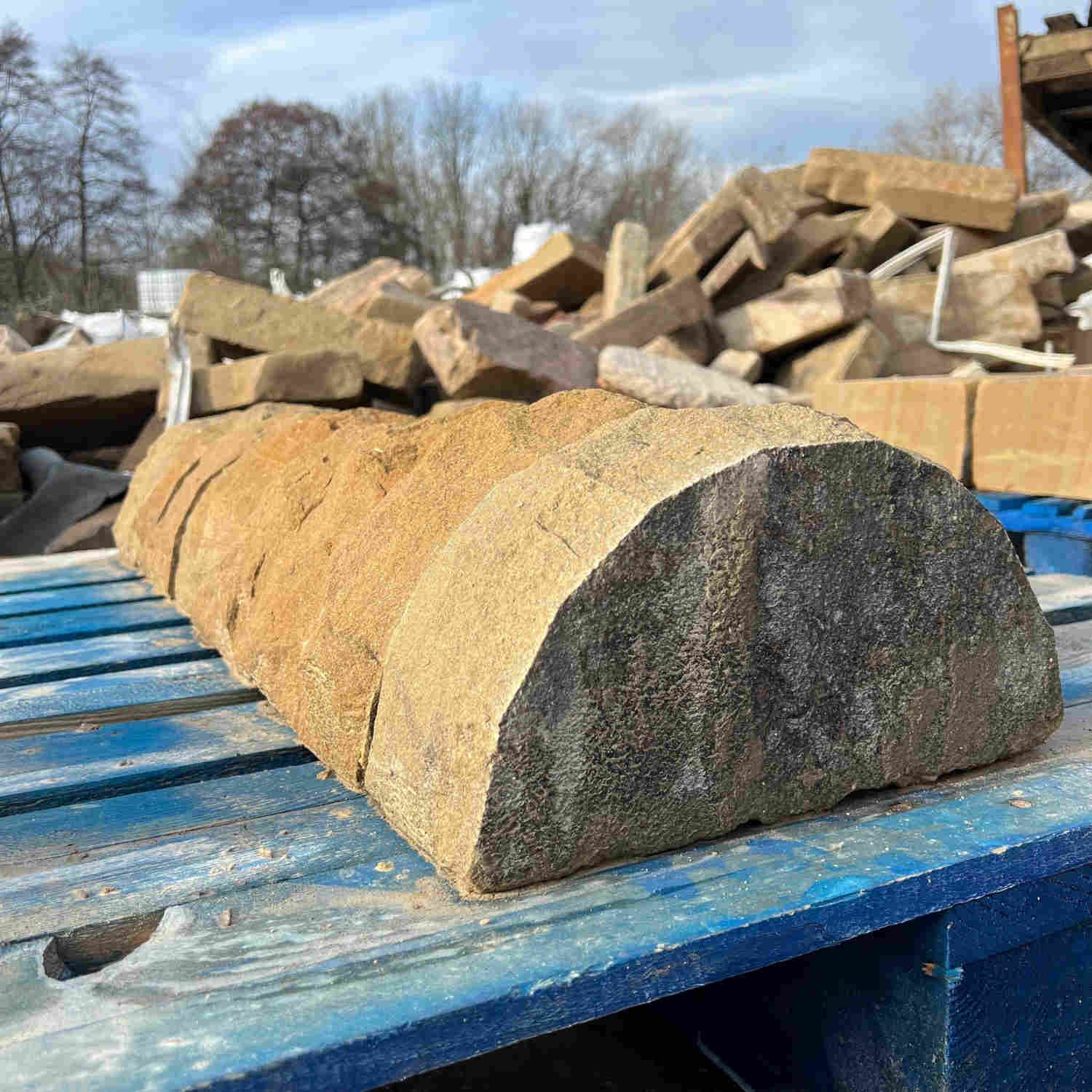 Our stunning Natural Stone Half Round Wall Coping, a remarkable addition to any architectural project. The weathered patina, textured surfaces, and subtle colour variations effortlessly blend with any design aesthetic, from rustic to contemporary.
